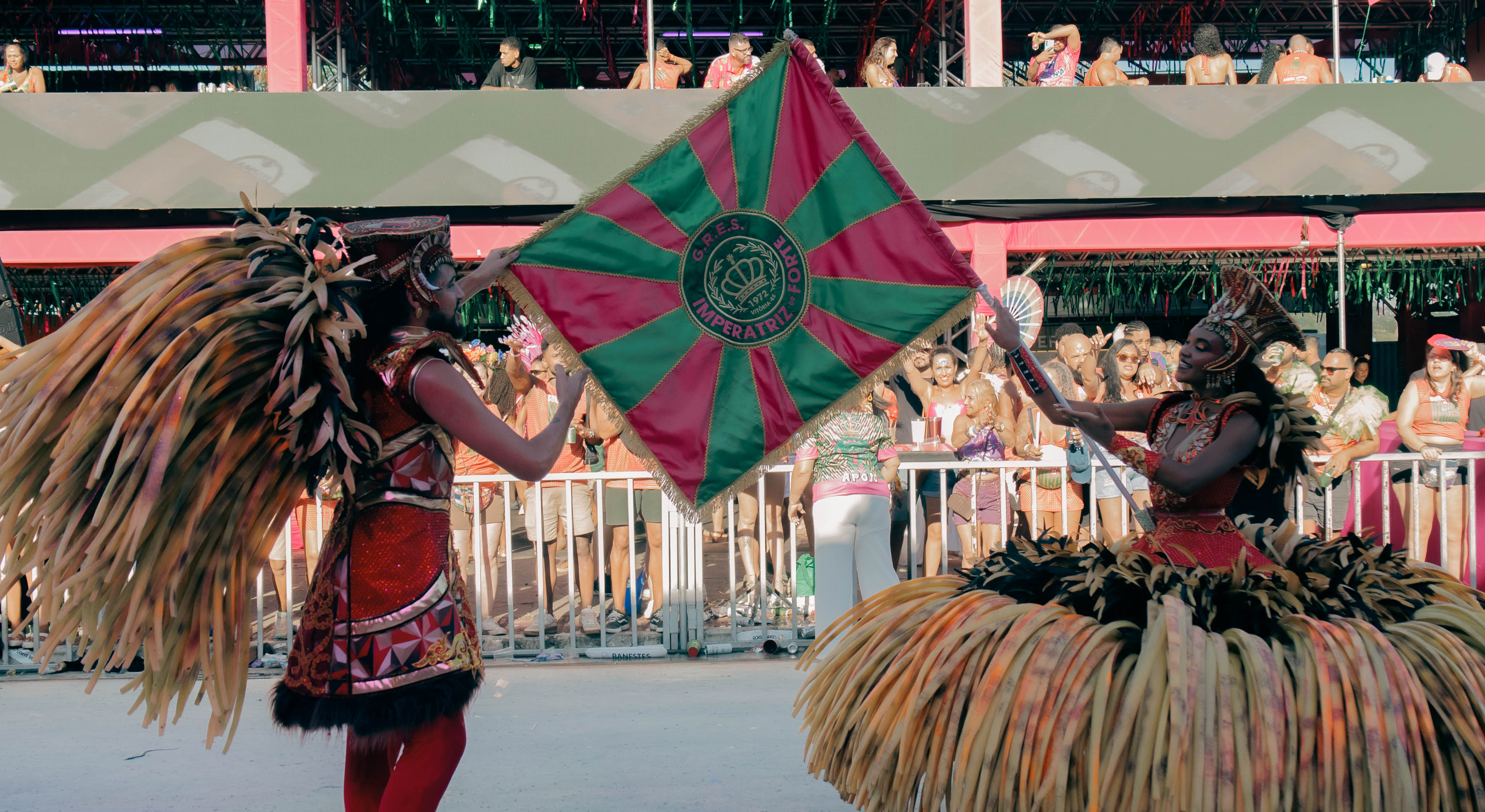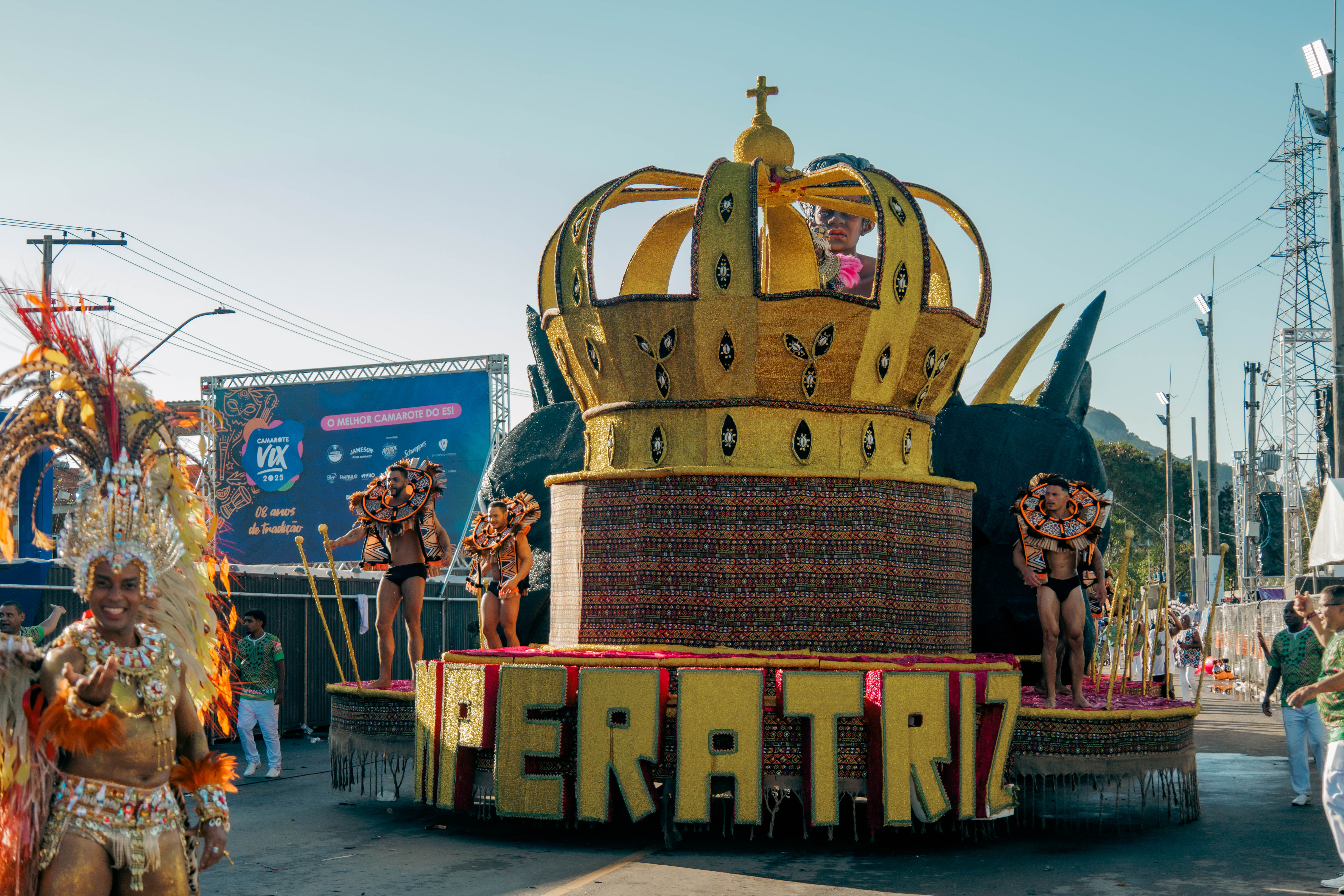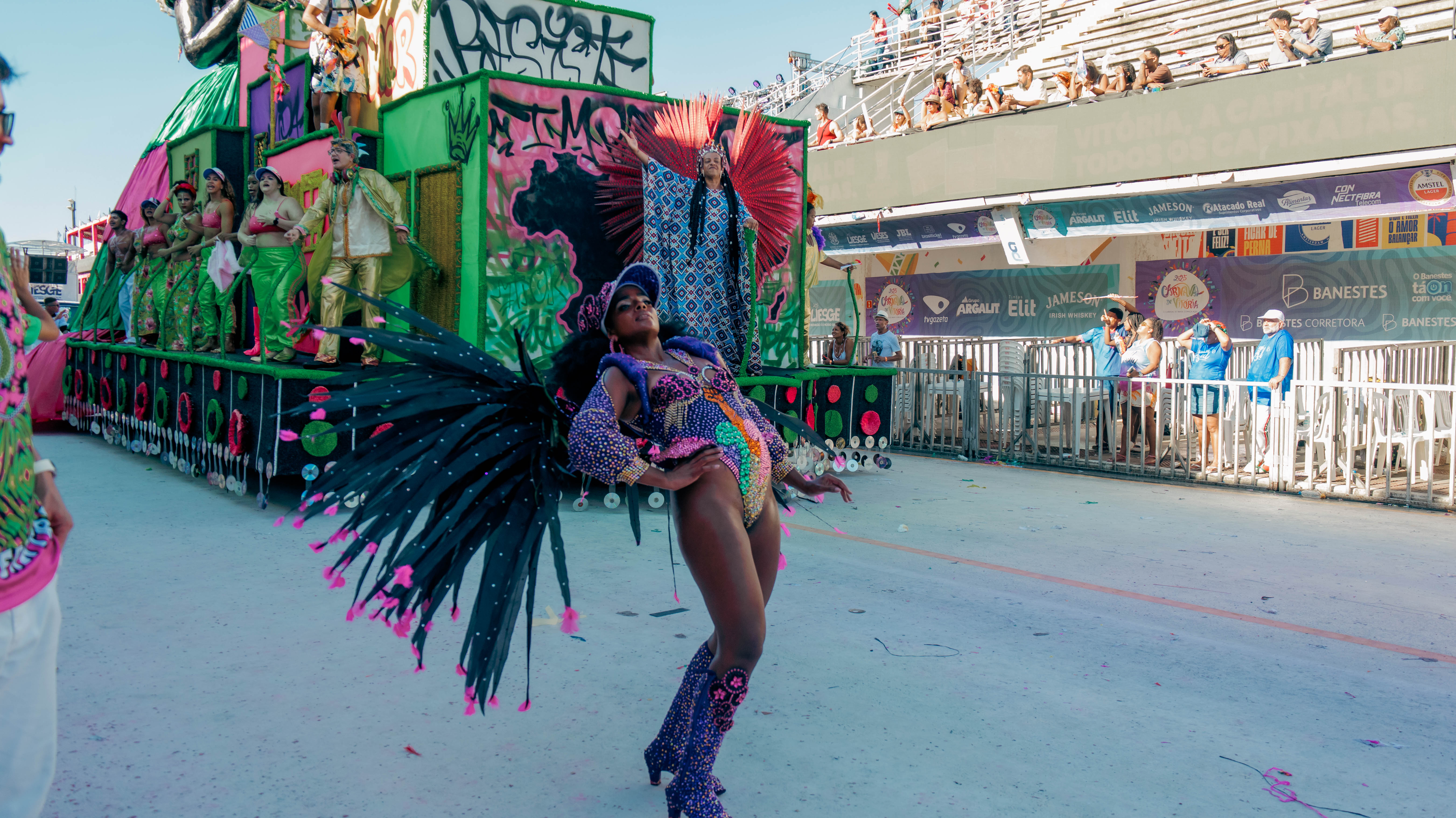 Registro fotográfico do desfile da escola de samba Imperatriz do Forte em 2025, evidenciando a energia, a riqueza cultural e a grandiosidade do carnaval capixaba.