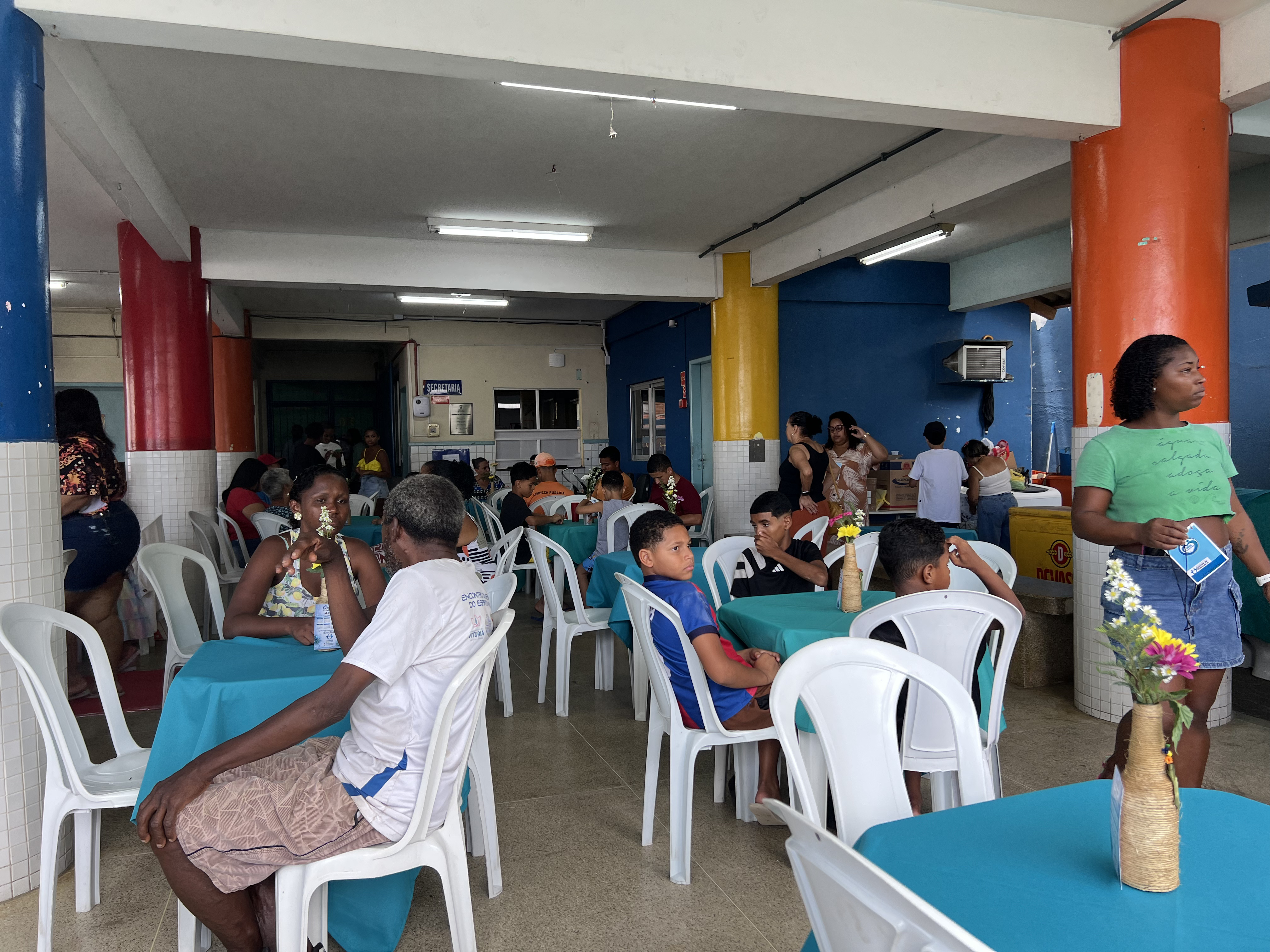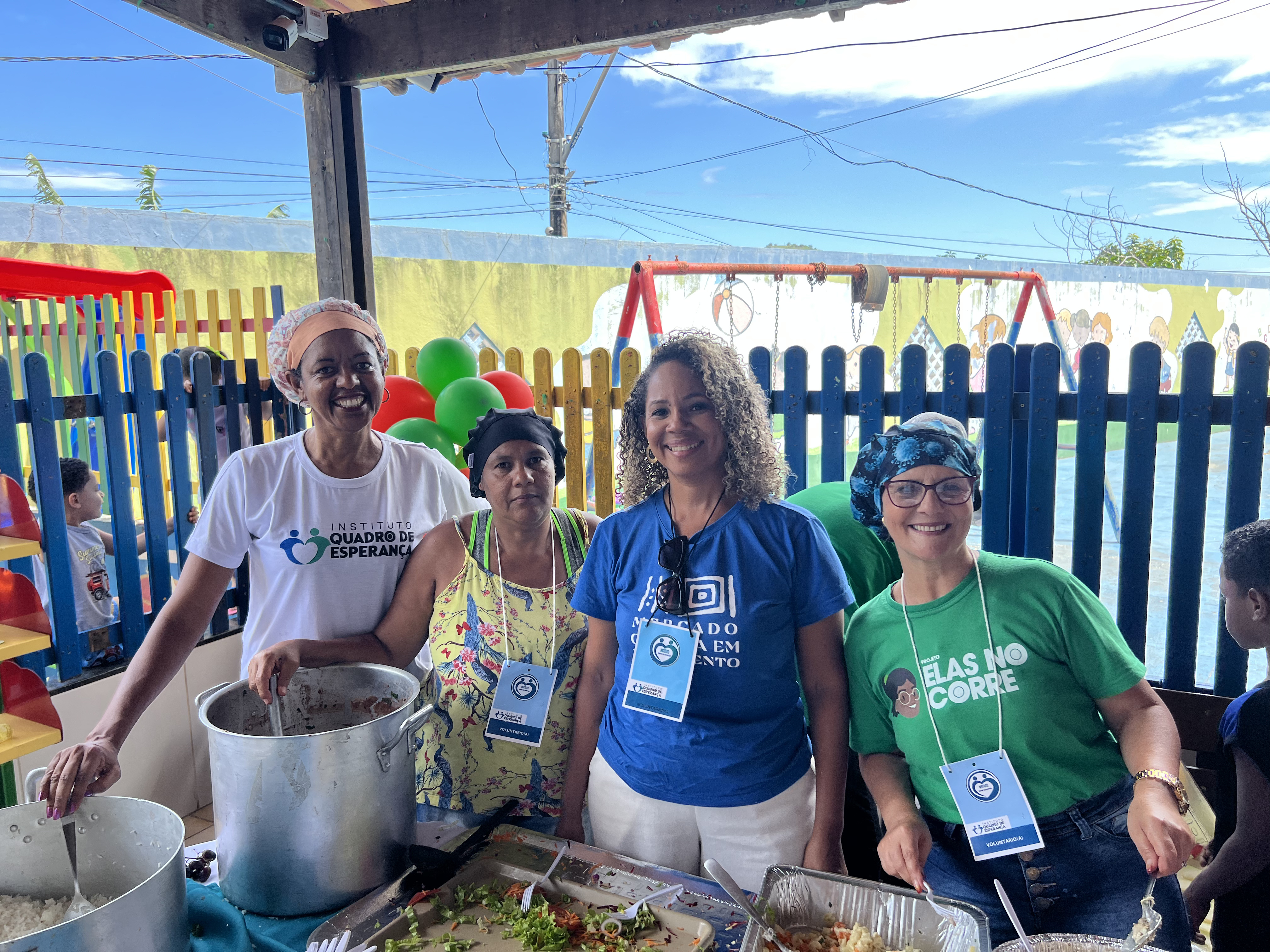 Registros fotográficos do terceiro almoço de natal em 2025 do Instituto Quadro de Esperança, momento de união e celebração.